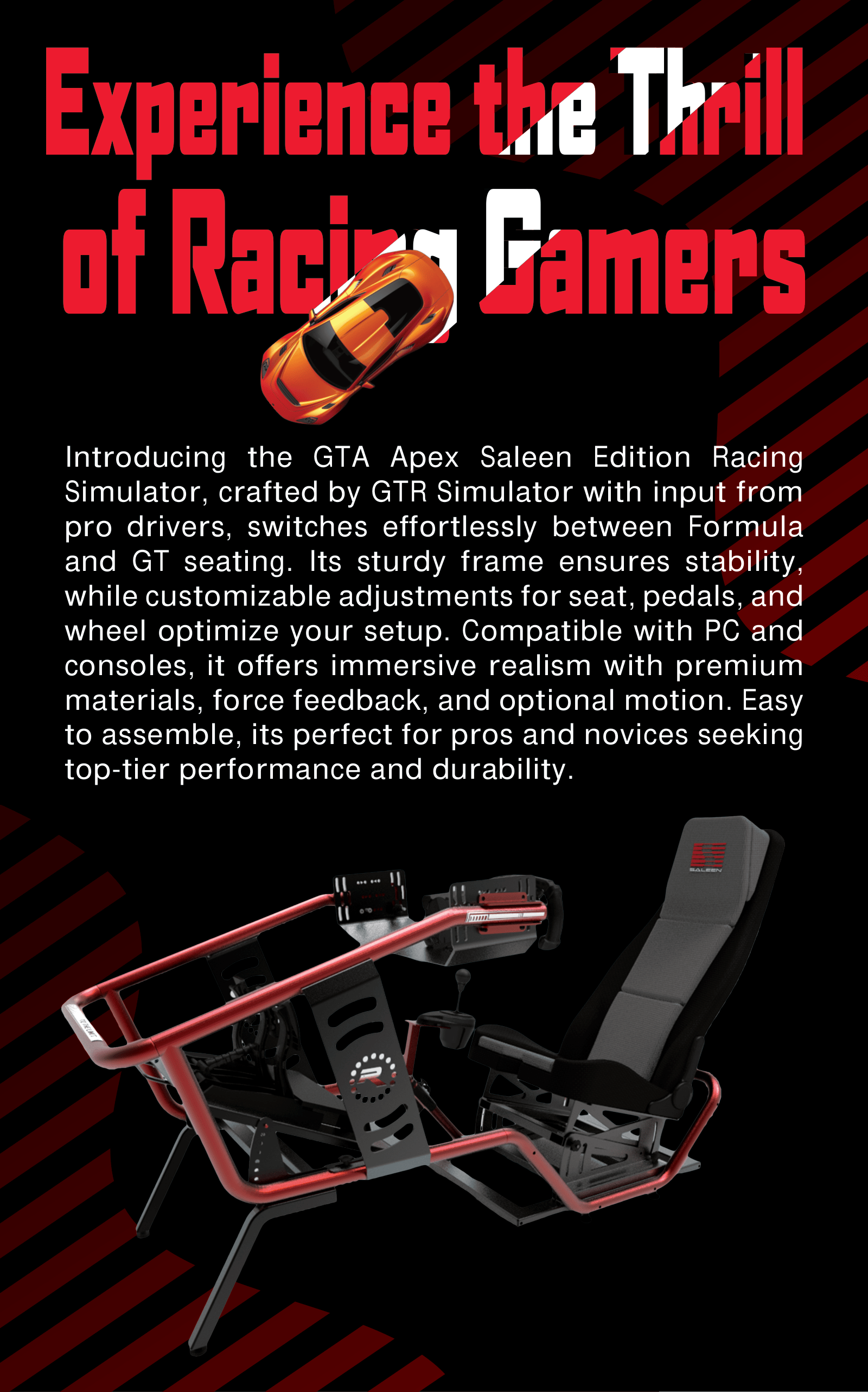 ![GTA™ Apex Formula Racing Simulator Cockpit Saleen Edition [PRE-ORDER]](http://gtrsimulator.com/cdn/shop/files/Apex_Saleen_FrontDecal.png?v=1771445959&width=1024)