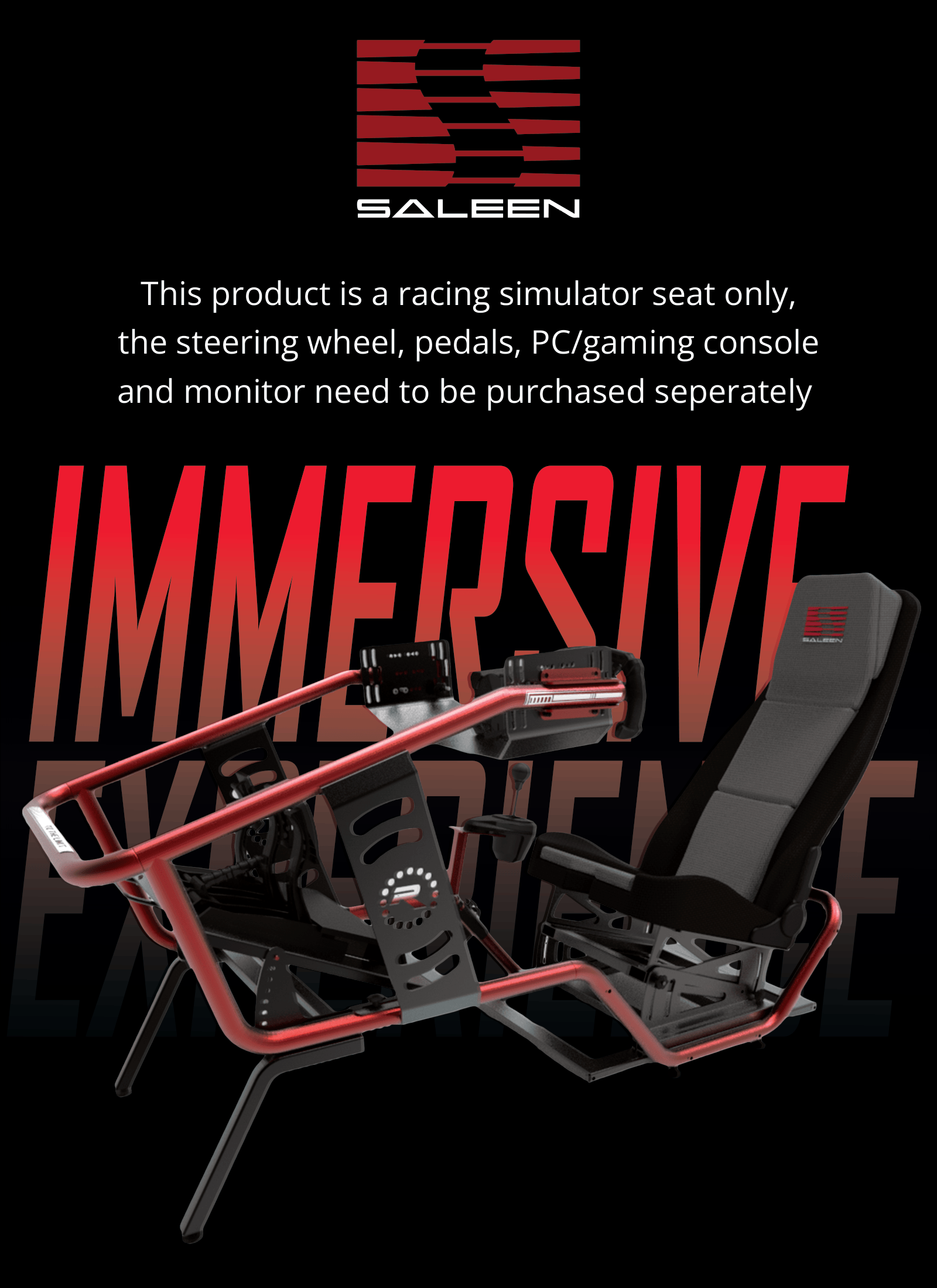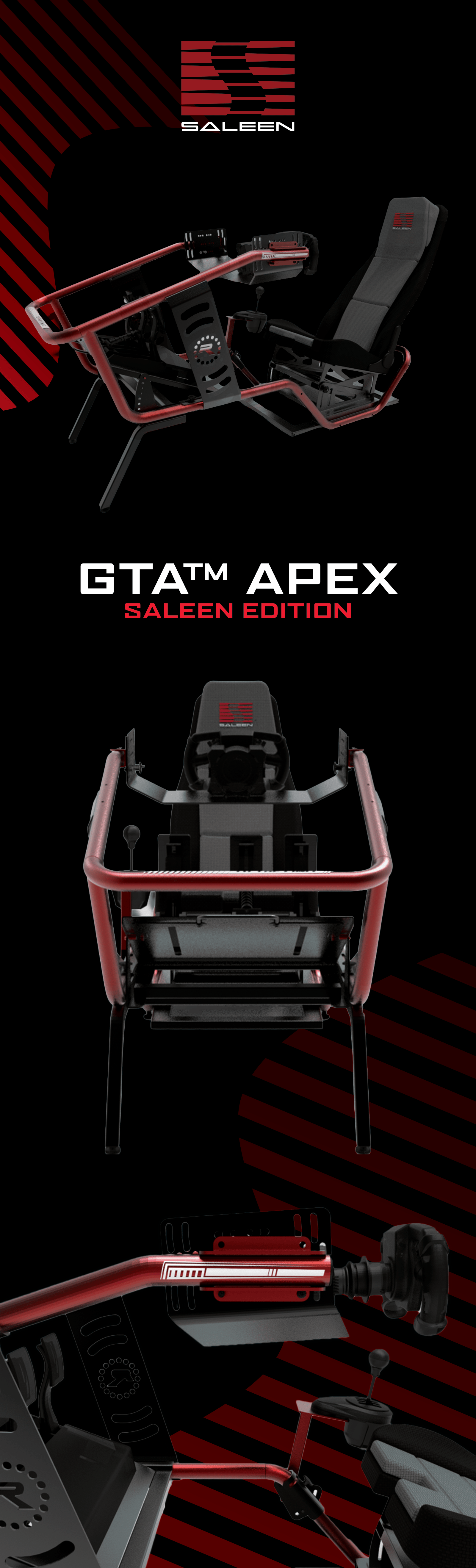 Built with a race-first mindset, this collaboration delivers a sim racing experience defined by precision, realism, and control. Every rig is engineered with motorsport-grade components, aggressive ergonomics, and uncompromising stability to replicate true track experience. Each detail is designed for sim racers who demand authenticity, immersion, and professional-level performance—no compromises, just pure Saleen DNA.