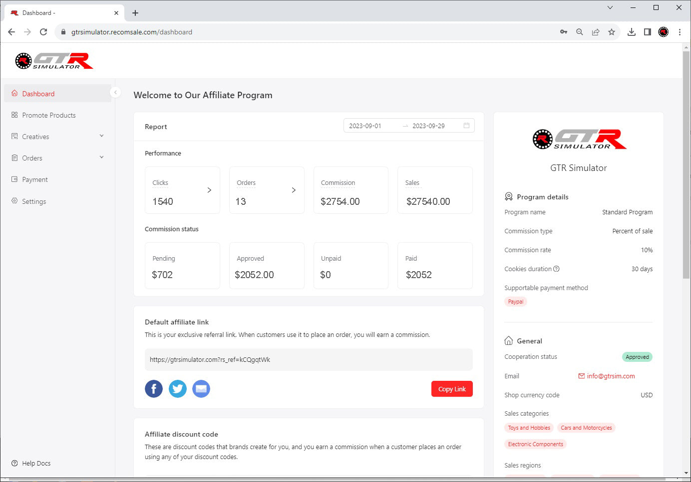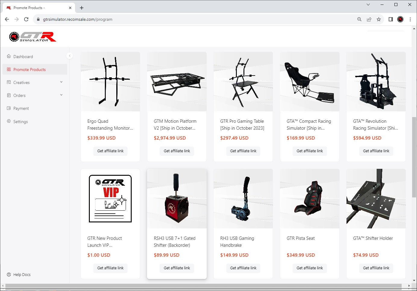- Use your affiliate link to direct people to GTR Simulator website where they can learn more and buy the products.